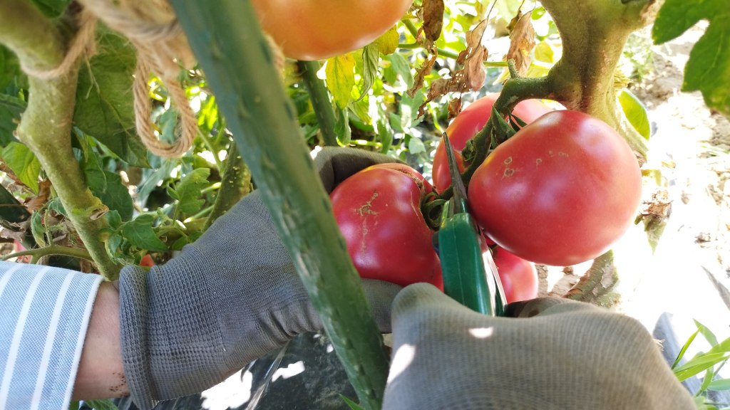 いくつかのトマトは割れてしまっています・・・