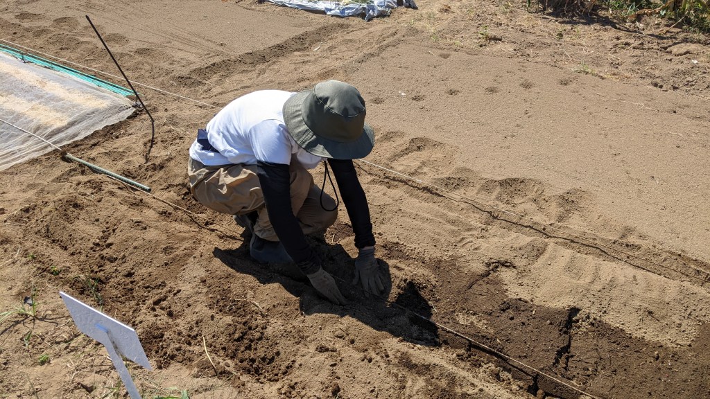 種のまき方を教えてもらって