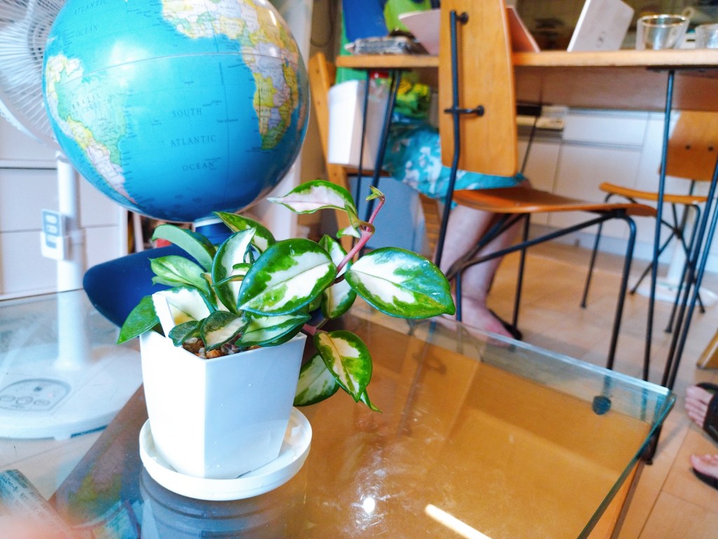 地球儀前の観葉植物の水受け皿です